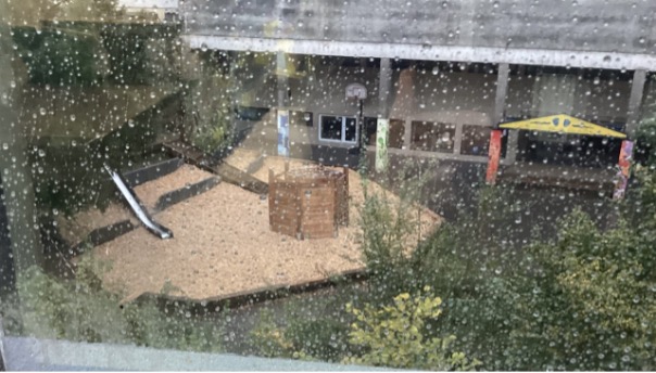 Liebe Kinder, endlich ist das Klettergerüst geöffnet. Am 10.11.2023 wurde es geöffnet. Passt auf die Erde auf, es ist noch matschig. In der Garten-Ecke müsst ihr auch aufpassen, weil ein Beet kaputt ist. Viel Spaß!